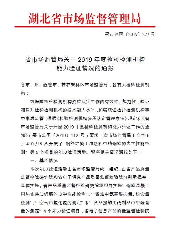 省市場監(jiān)管局關于2019年度檢驗檢測機構(gòu) 能力驗證情況的通報
